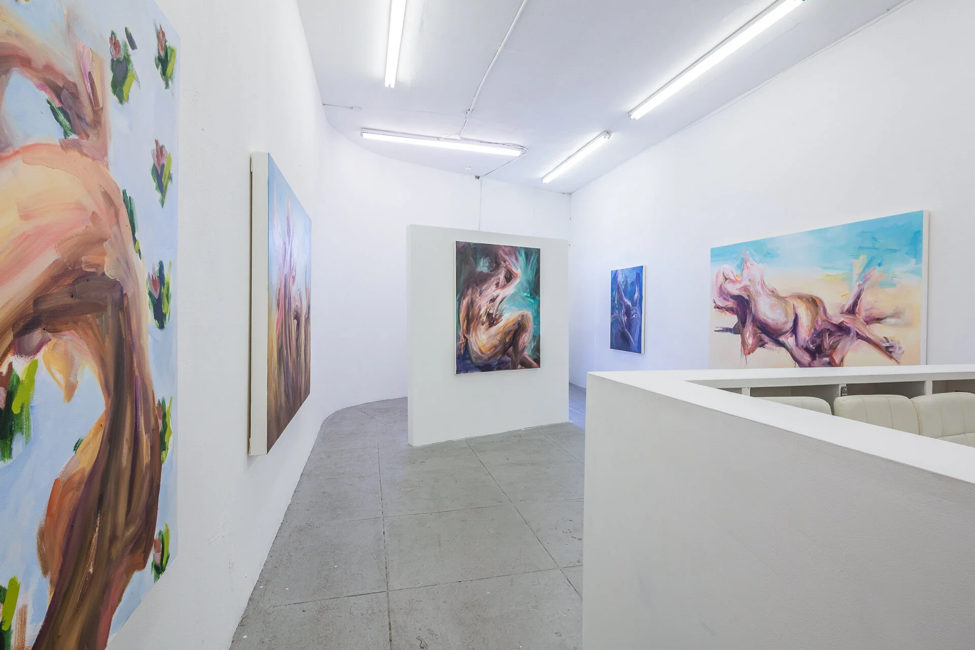 'The paintings of Broersma occupy an enigmatic space where anthropomorphic gestures collide with classical genre painting. Her bent, twisted and twirling forms weave the figure and the environment together into a seamless pictorial event. Executed in a manner that is both haptic and subtle, Broersma's painterly vocabulary mixes a reserved sensualism with dithyrambic operations. As such, her unique take on classical themes like 'the bathers' and 'the odalisque' challenge not only traditional ideas of beauty and design, but they explore the shifting space between figurative naturalism and the (post-)modern preoccupation with formlessness." - Grant Vetter, excerpt from Dithyrambic catalog essay