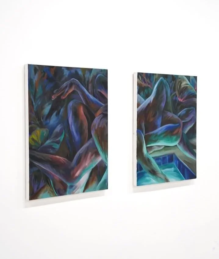 Virginia Broersma's artistic practice coexists with her research project into leisure practices through the lens of Southern California. The locations in her paintings are often sites rich in leisure history, such as swimming pools and deserts. Her lush sun-kissed paintings are born from the cultural imagination of Los Angeles, a metropolis built on optimism and glamour, where dreams materialise, and fantasy and reality coexist. She absorbs information about the ways people have sought personal liberation through activities such as mud bathing, sungazing, swimming and sunbathing—practices that her home region of Southern California, in particular, has attracted. These personal rituals and their locations are the primary subjects of her paintings, playing with romanticised notions of the region offering good health, opportunity and prosperity for all.