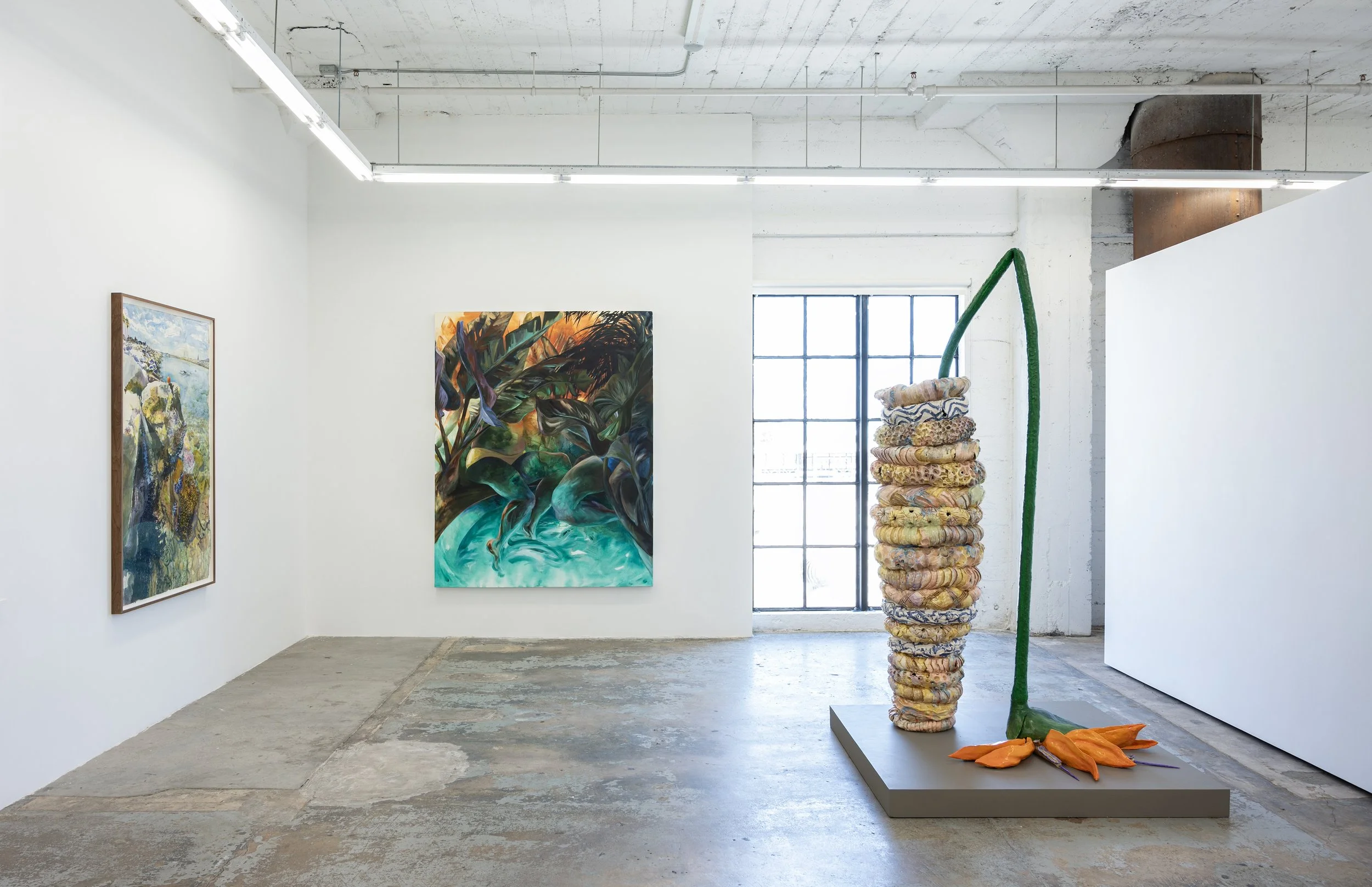 Curated by Michael Slenske, Water & Flower underscores the transient beauty of our constructed environments amidst an era of decline. Through narrative watercolors, the reckless allure of floral constructions and deteriorating waterways are unveiled, portraying them as spaces of folly and failure. Oil paintings and ceramics envision fantastical flora and fauna emerging from utopian, dystopian, and Pop landscapes. The exhibition also captures the essence of SoCal pool culture, reflecting on how these repositories of leisure and introspection simultaneously embody desolation and decadence in a period of drought and fire.